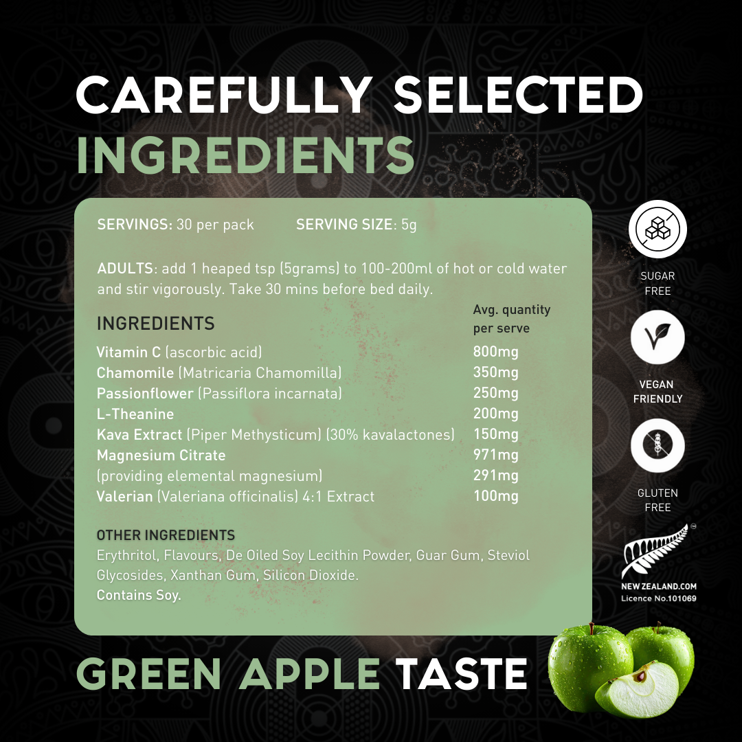Sleep comes in a delicious green apple tea flavour, offering a soothing and enjoyable way to wind down at the end of your day.