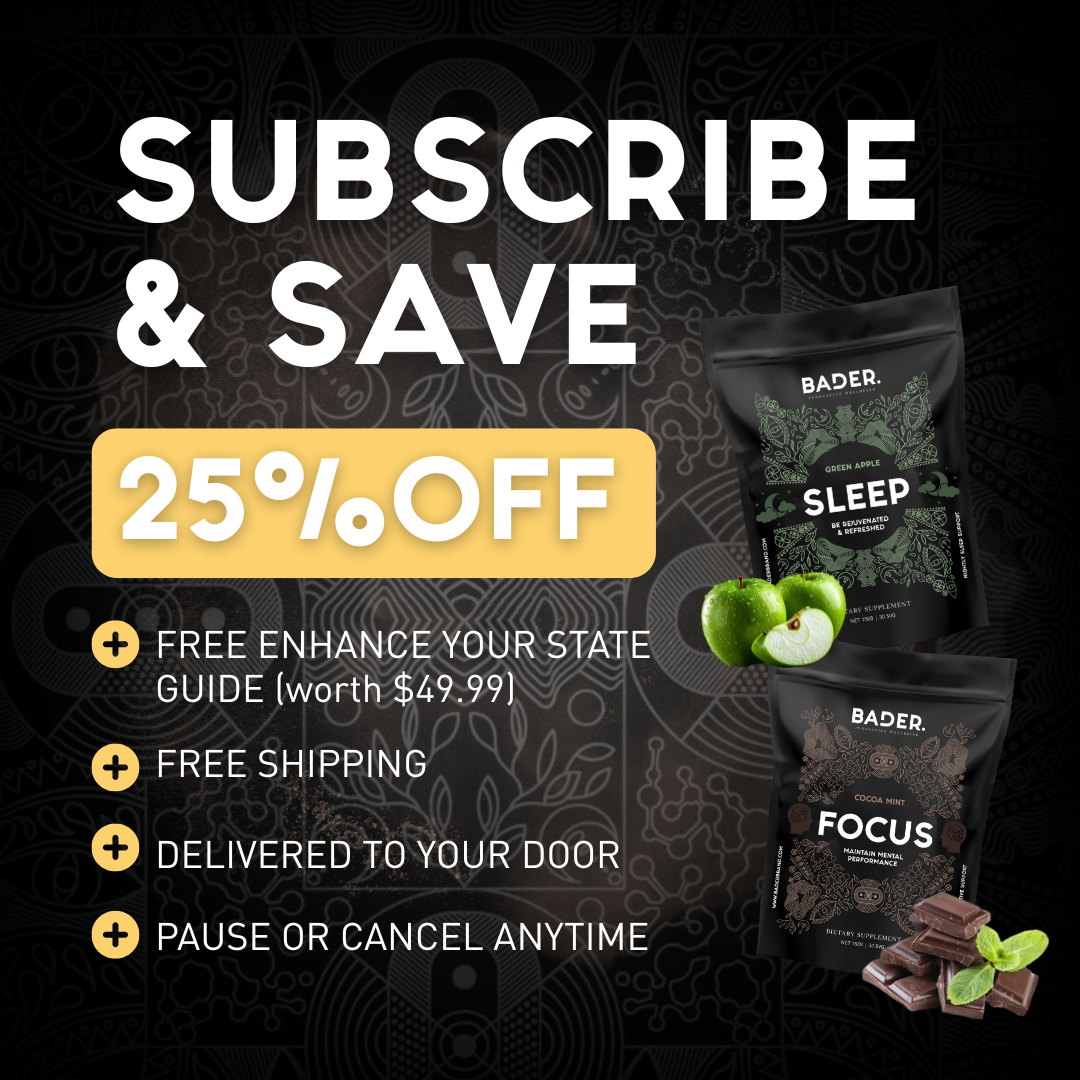 The Total State Enhancement Bundle combines Bader's FOCUS and SLEEP formulas to help you enhance your overall state of being.